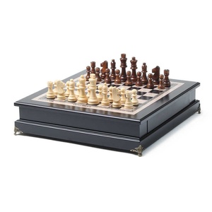 Yüksek dereceli ceviz katı ahşap satranç kutusu çekmece ile prim satranç ve dama oyun deneyimi için zarif sınır ötesi tasarım